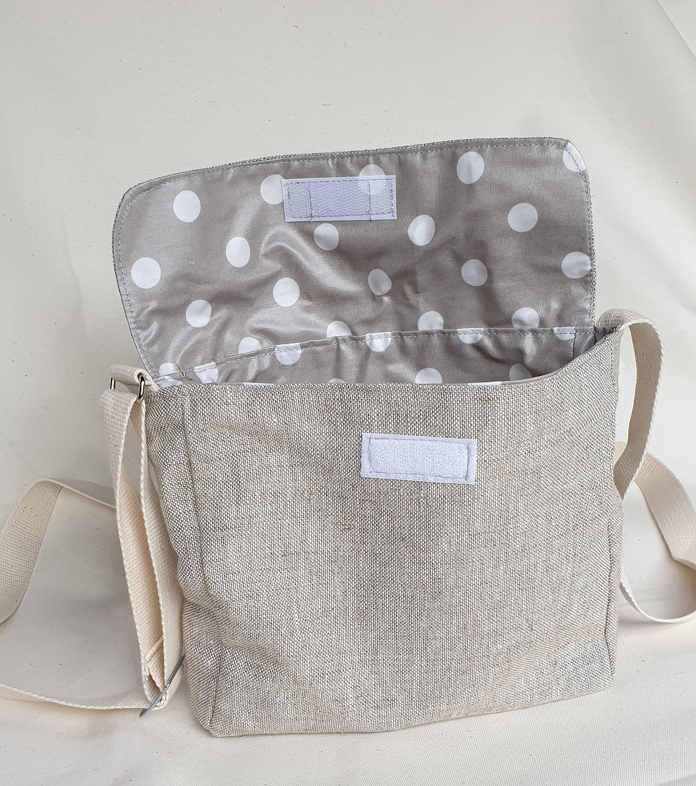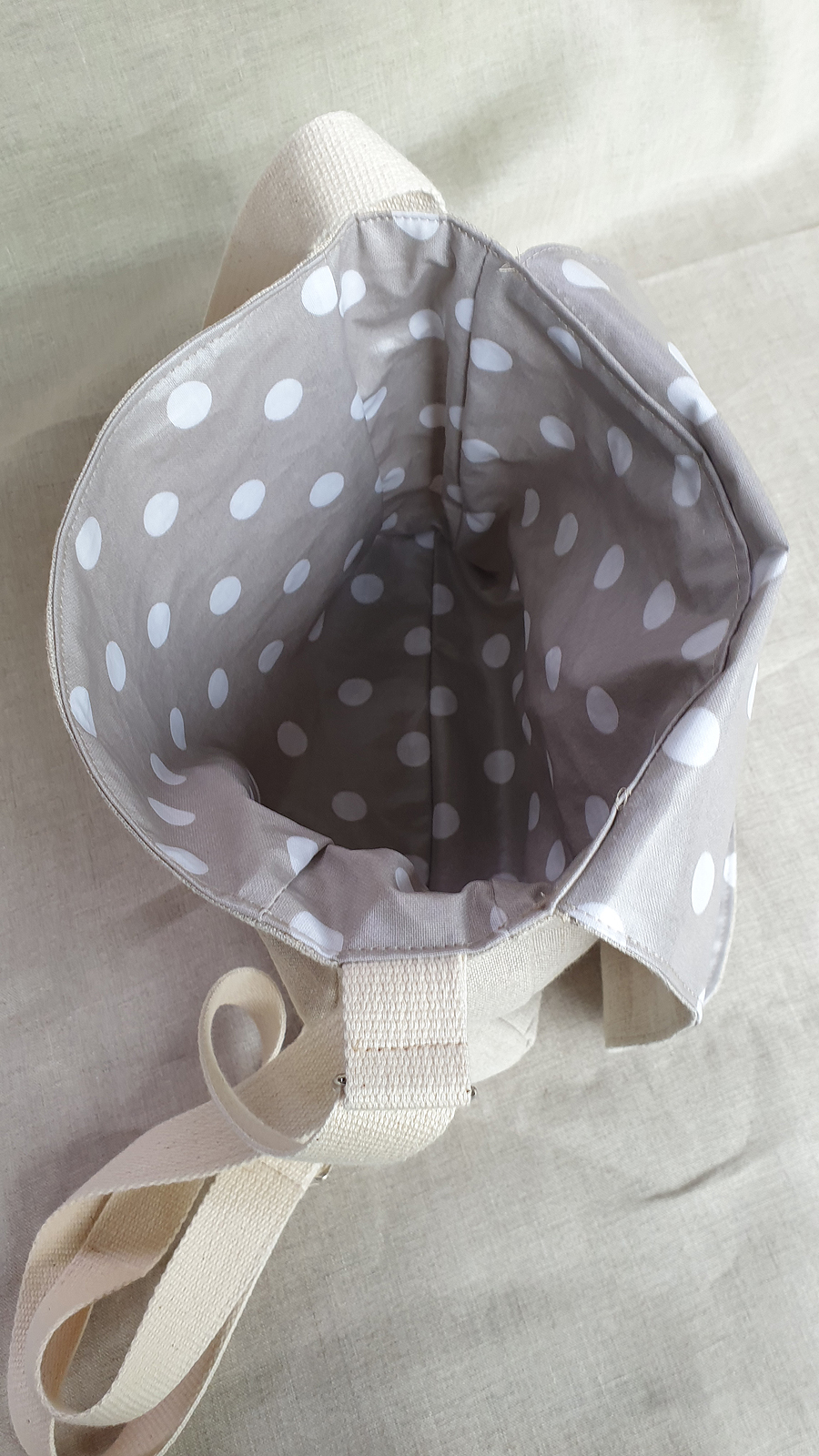 Material: außen: Leinen, innen: beschichtete Baumwolle, lebensmittelgeeignet