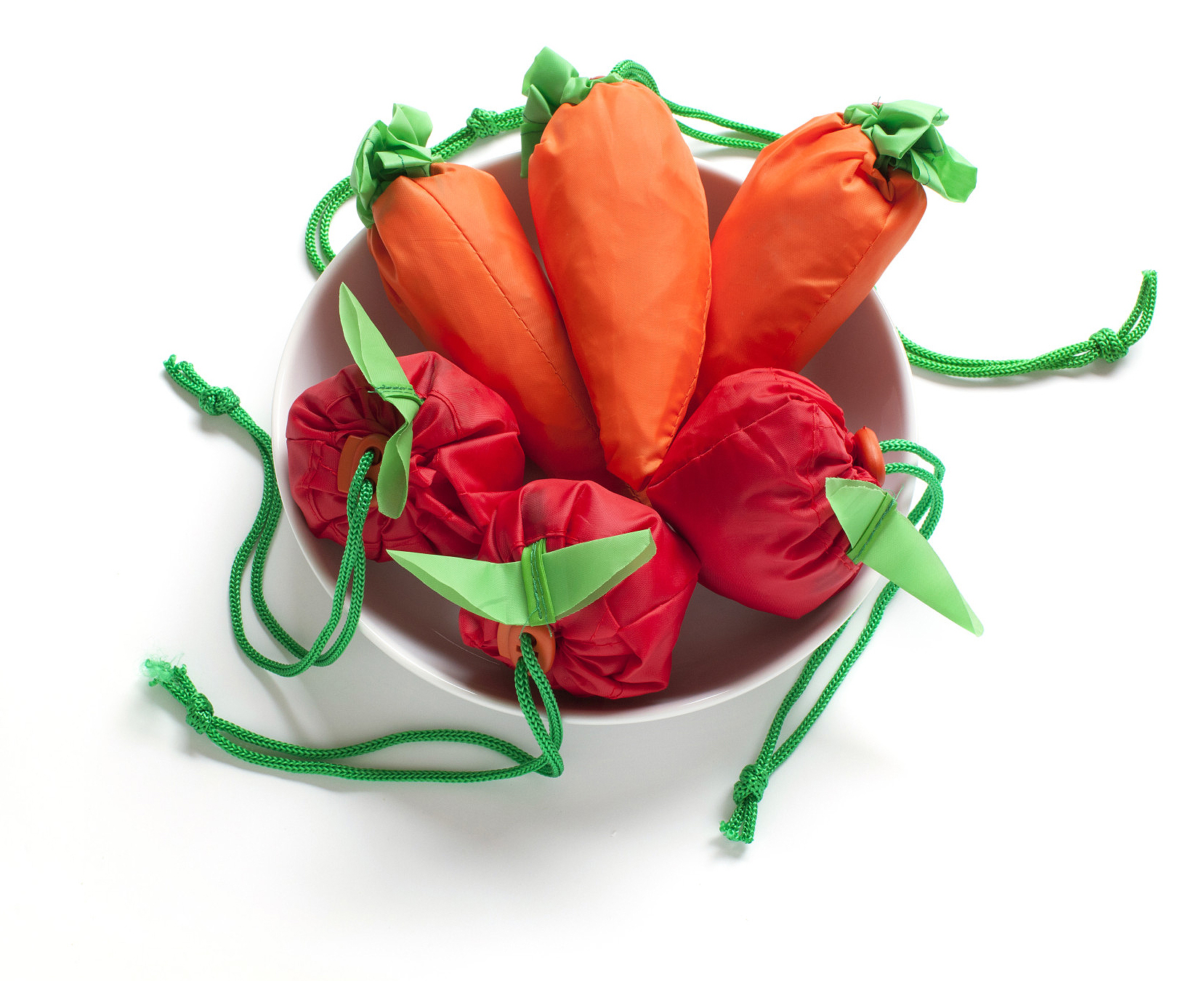 Praktische Einkaufstasche, jederzeit bereit, da klein in der Tasche als "Frucht" zusammenfaltbar.