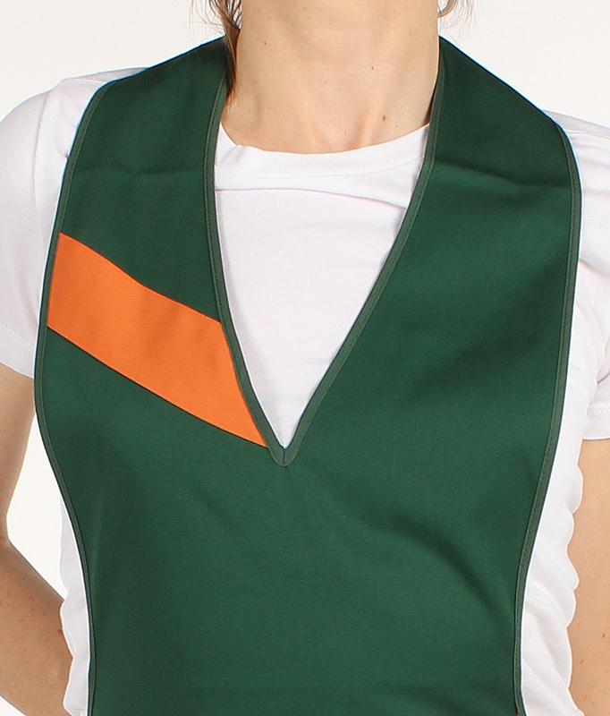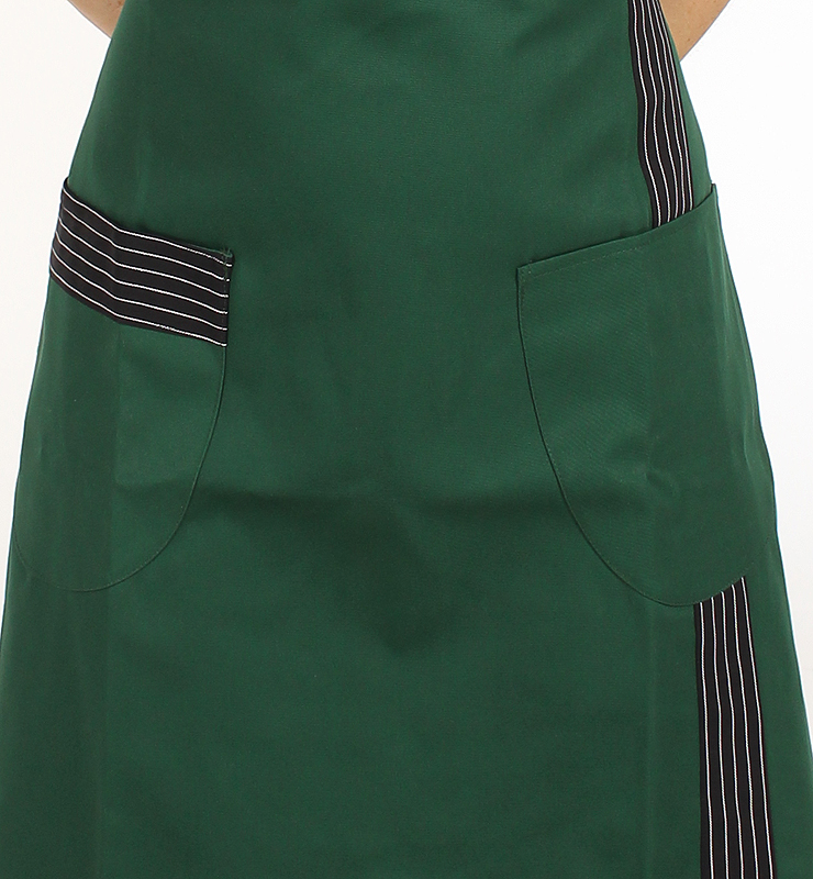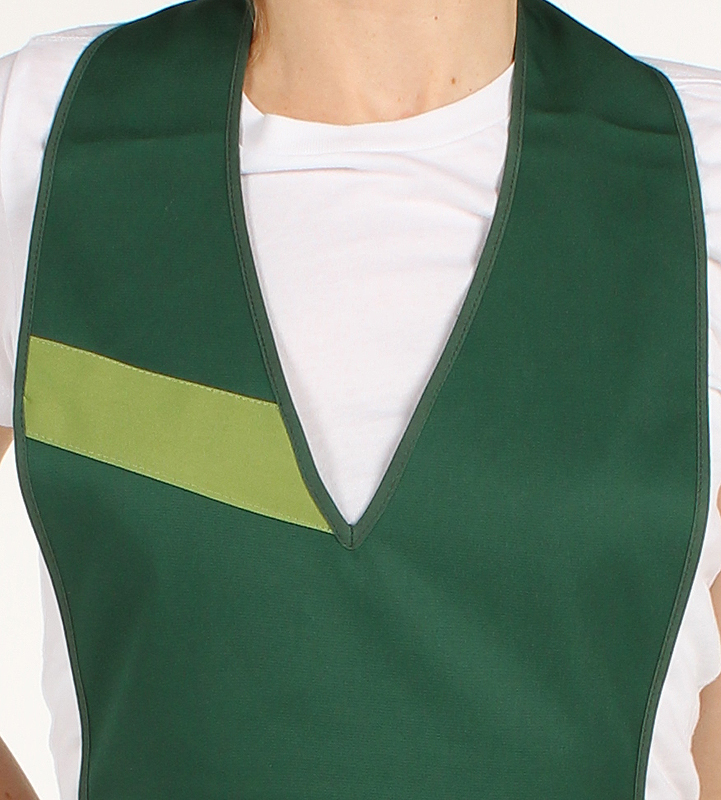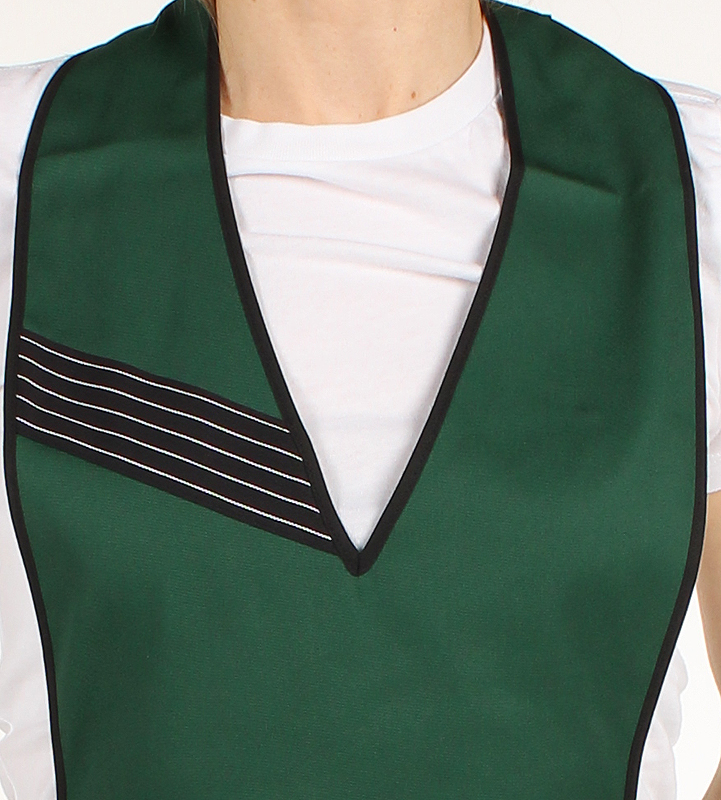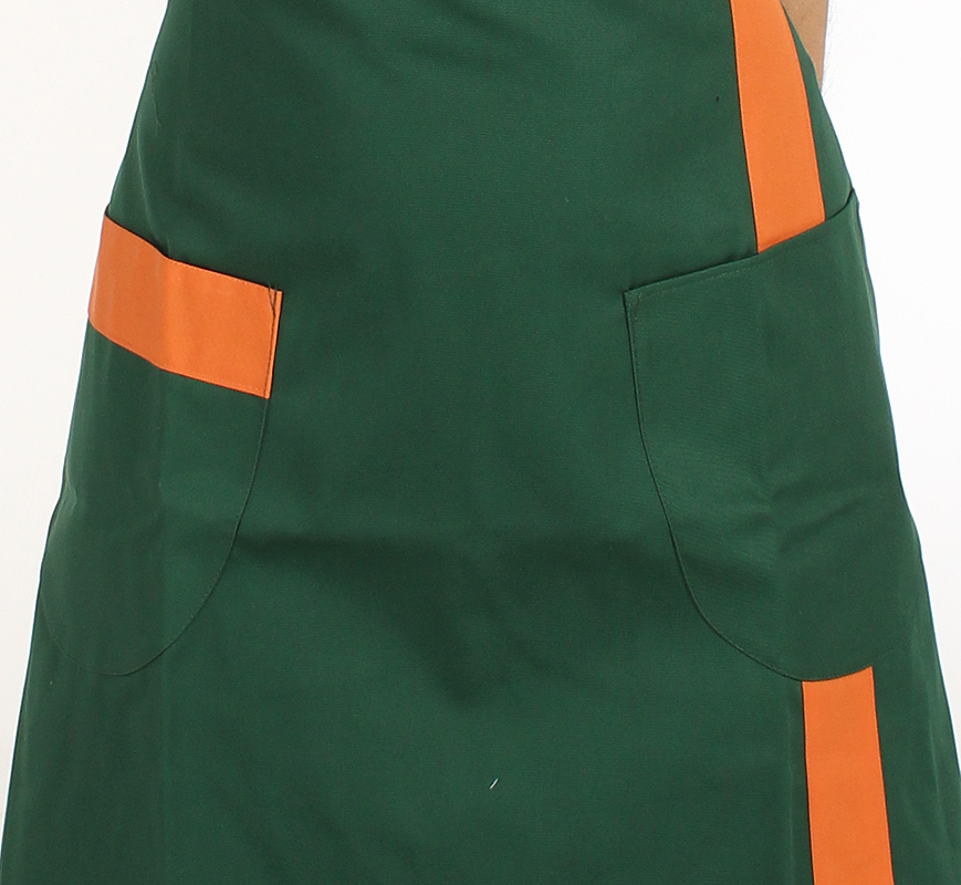 Latzschürze, zwei Taschen, Nackenband mit Klettverschluß verstellbar.