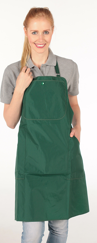 Wasserdichte Latzschürze für Damen und Herren, eine Brusttasche, zwei Taschen, Nackenband mit Schließe verstellbar.
