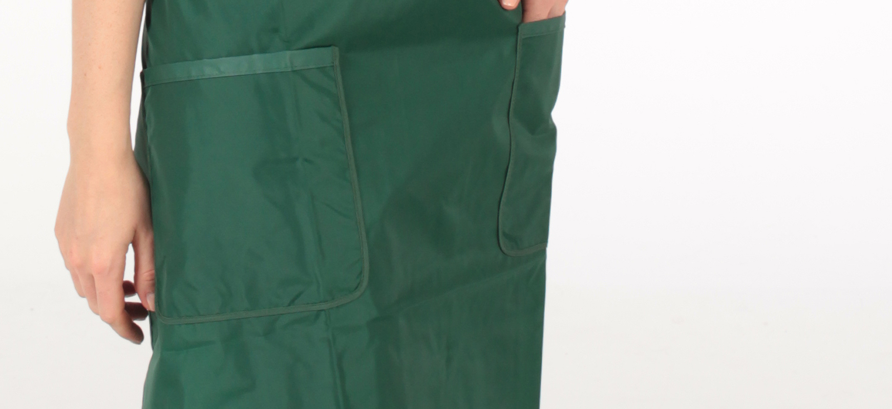 Wasserdichte Latzschürze für Damen und Herren, eine Brusttasche, zwei Taschen, Nackenband mit Schließe verstellbar.