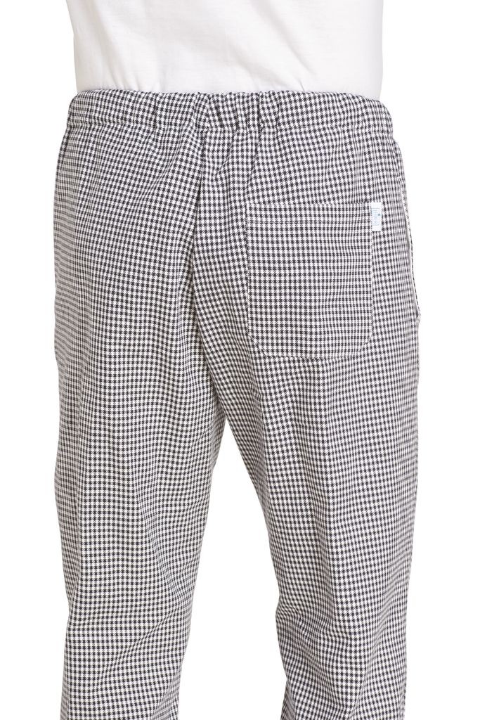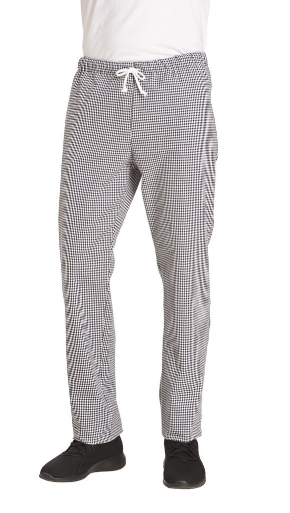 Unisex-Koch-Bäckerhose mit Rundumgummizug und Kordelband, zwei Seitentaschen, eine Gesäßtasche.