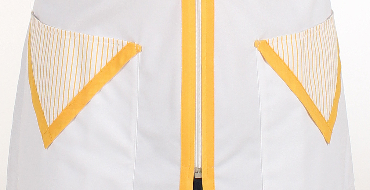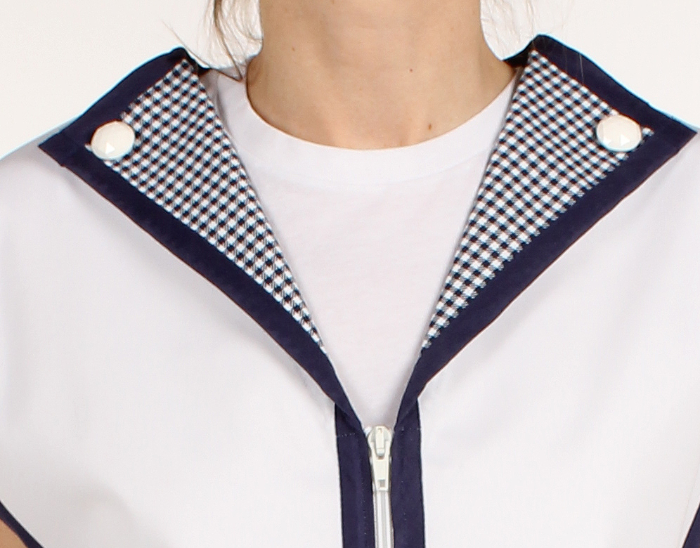 Kasack mit Rückenriegel, leicht tailliert.