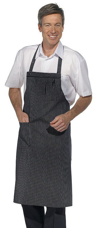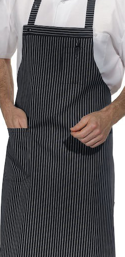 Latzschürze für Damen und Herren, eine Tasche rechts, eine Brust-Stifttasche, Nackenband mit Druckknopf verstellbar.
