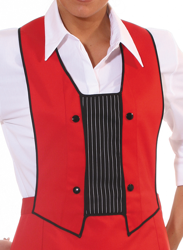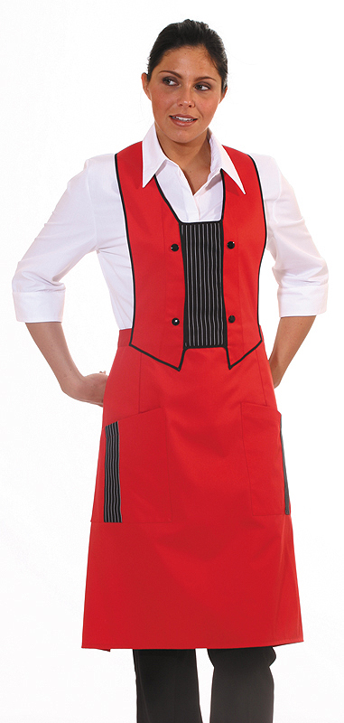 Latzschürze mit zwei Taschen, Nackenband mit Klettverschluß verstellbar.