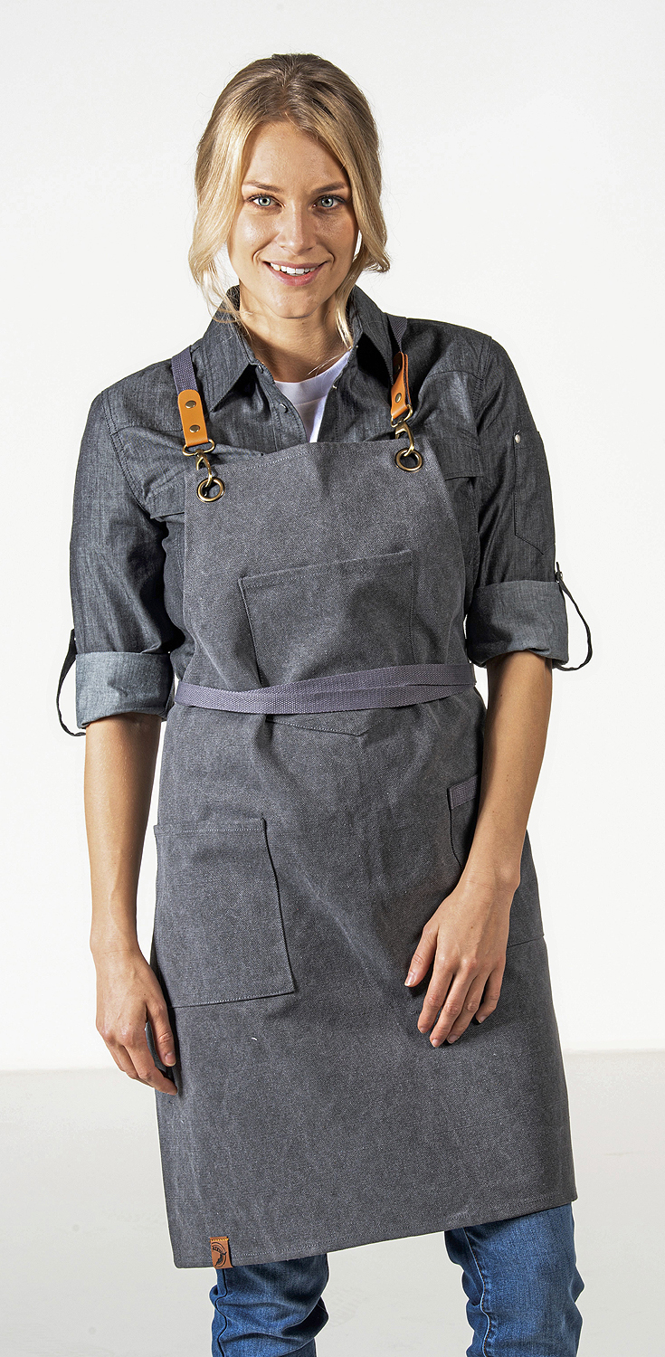 Canvas Latzschürze für Damen und Herren mit Kreuzbindung im Rücken,mit drei Taschen, durchgängige Stoffbänder, austauschbar, PU-Leder
