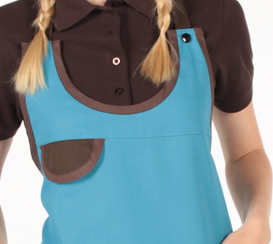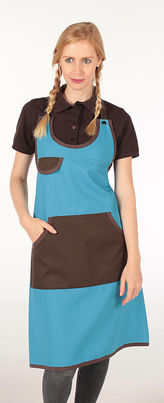 Latzschürze für Damen und Herren mit Druckknopf, eine unterteilte Mitteltasche.