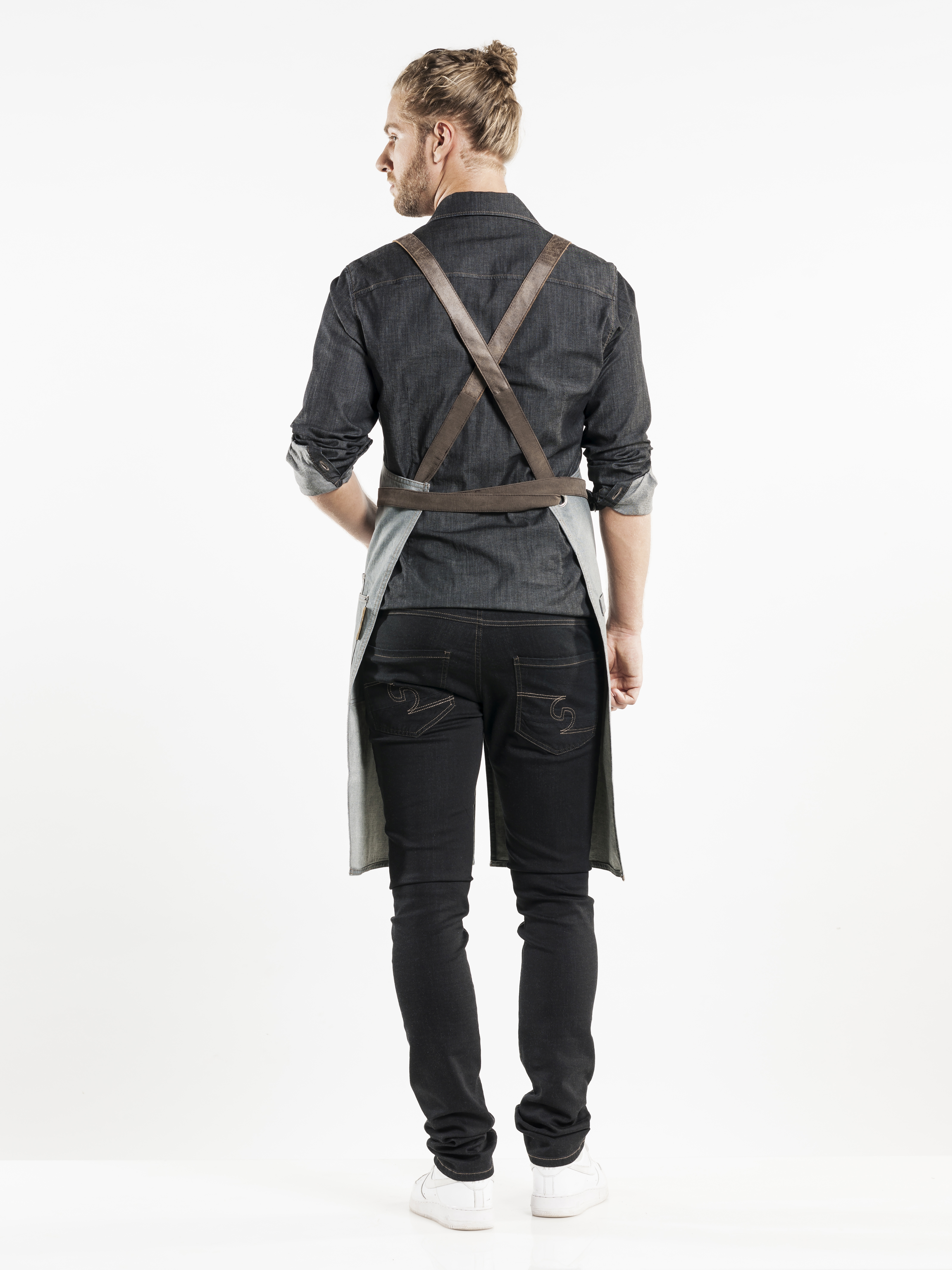 Modische Jeans-Latzschürze für Damen und Herren über Kreuz am Rücken zum Binden, Lederhalsband... mehr