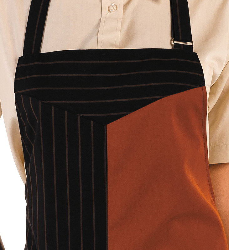 Latzschürze für Damen und Herren, Gehschlitz mittig, Nackenband mit Schließe stufenlos verstellbar, eine Tasche rechts.