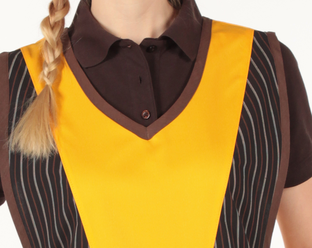 Überwurfmodell mit Druckknöpfen seitlich verstellbar, zwei Taschen.