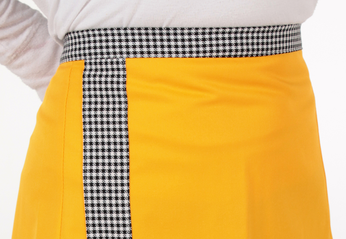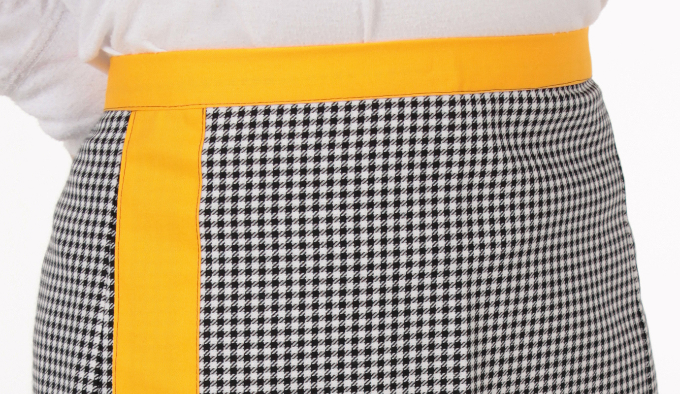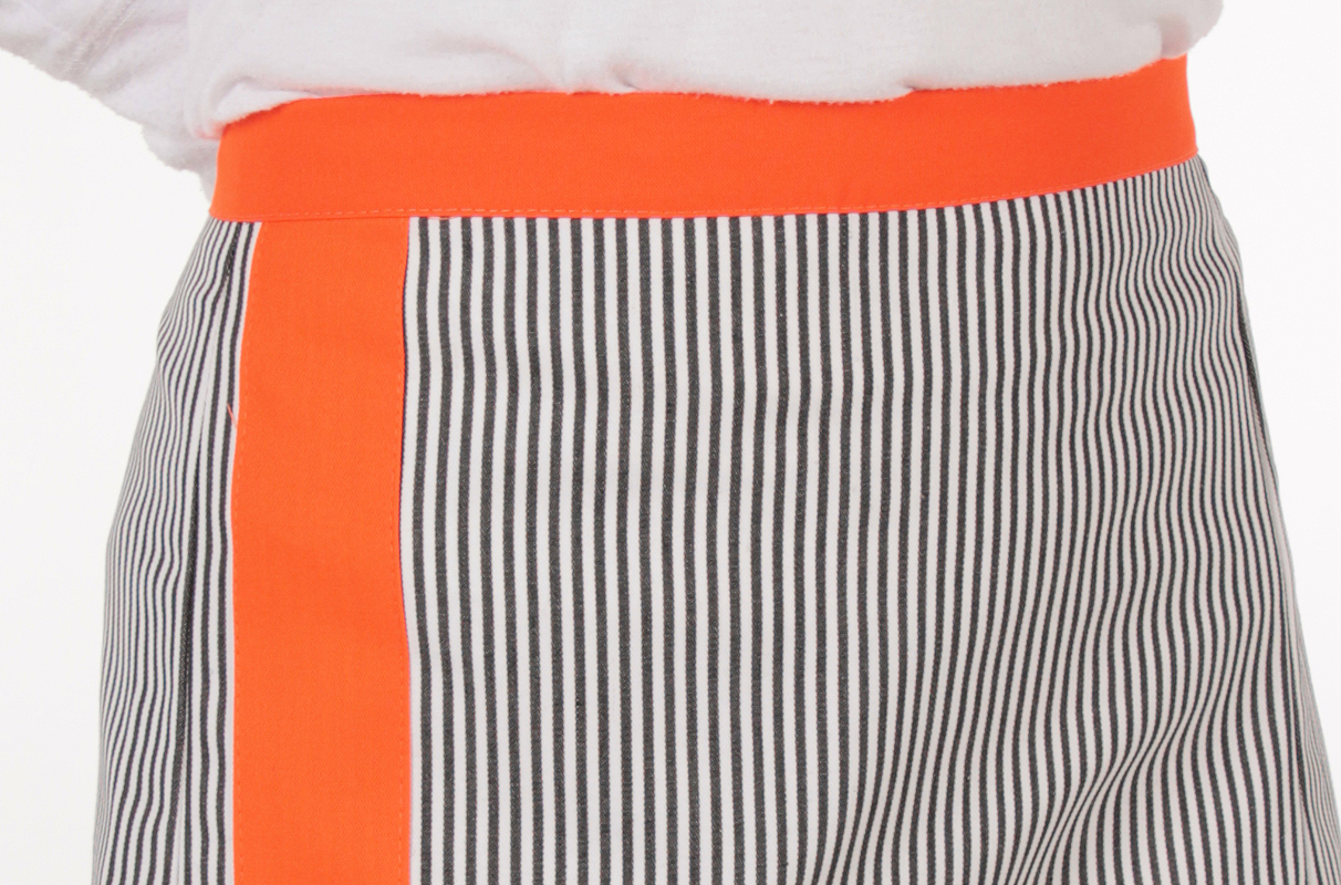 Vorbinder mit zwei Abnähern, Stoffbändern.