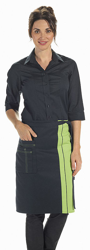 Vorbinder mit einer aufgesetzten Handy- und Stiftasche rechts, Kontraststeppung, Stoffbänder.