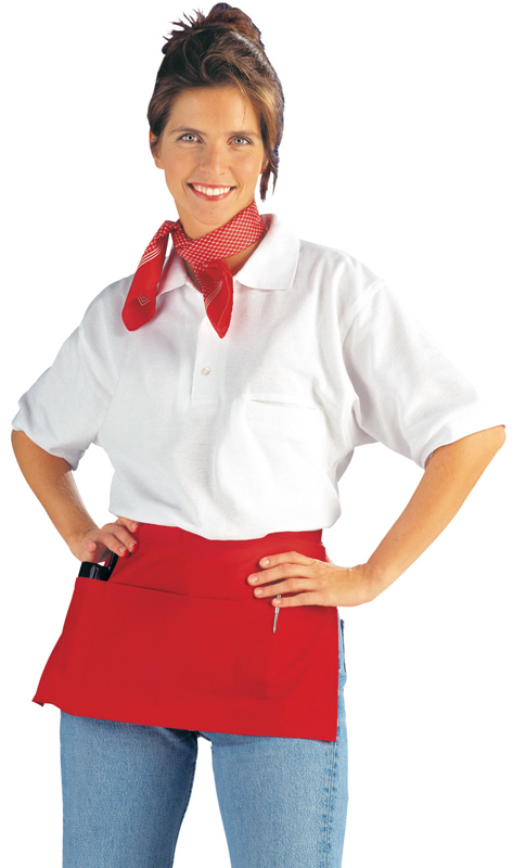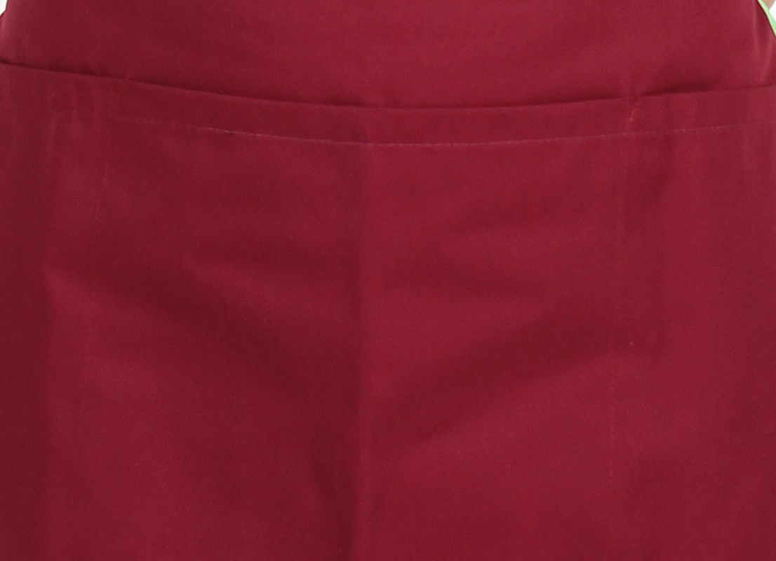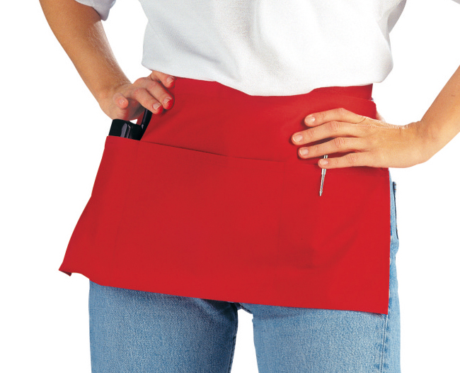 Kleine Halbschürze, eine Tasche über die gesamte Breite dreifach unterteilt.