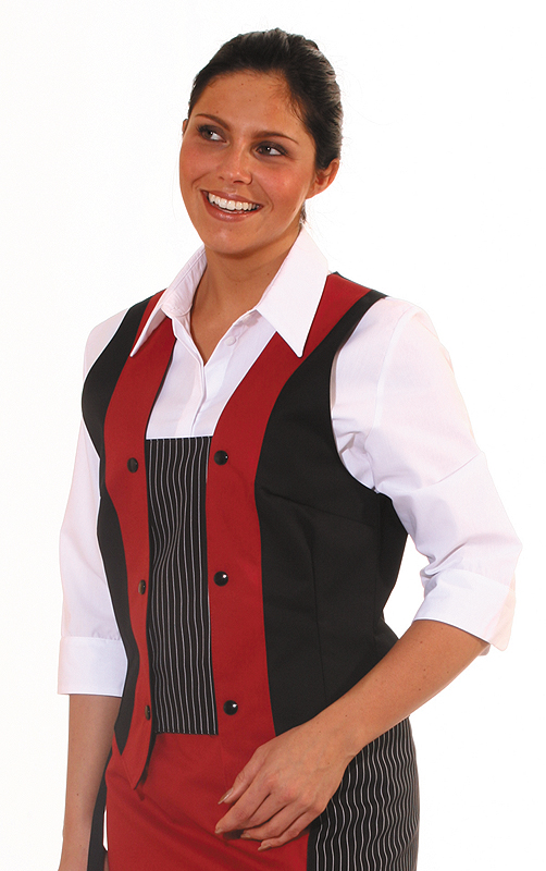 Damenweste, Druckknöpfe, Rücken einfarbig.