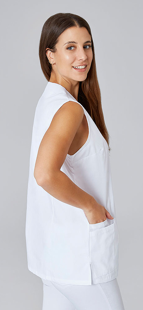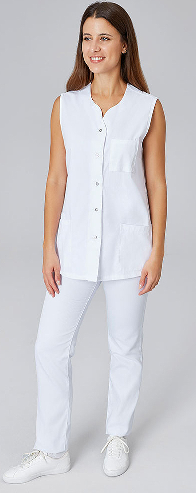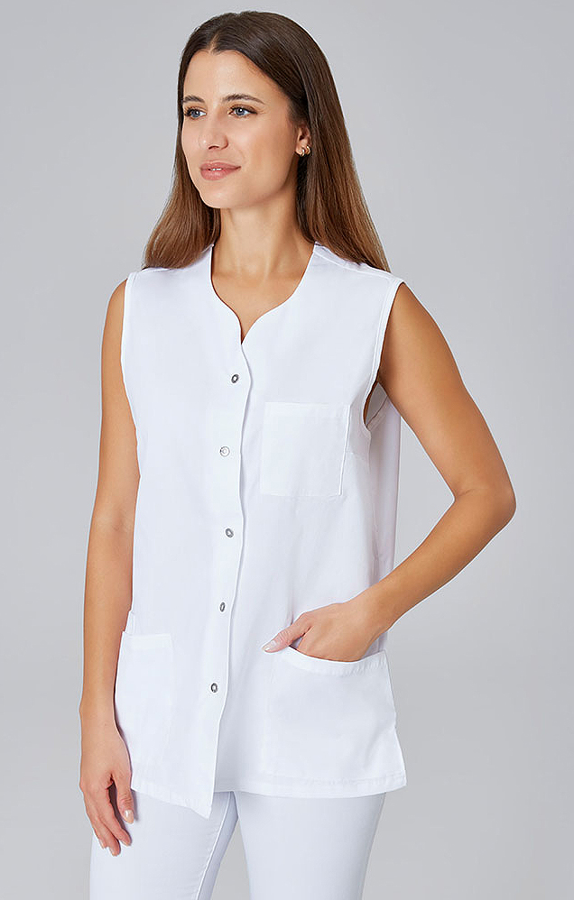 Damenkasack ohne Arm, dekorative Druckknopfleiste, drei aufgesetzte Taschen. Größe: XS - 5XL... mehr