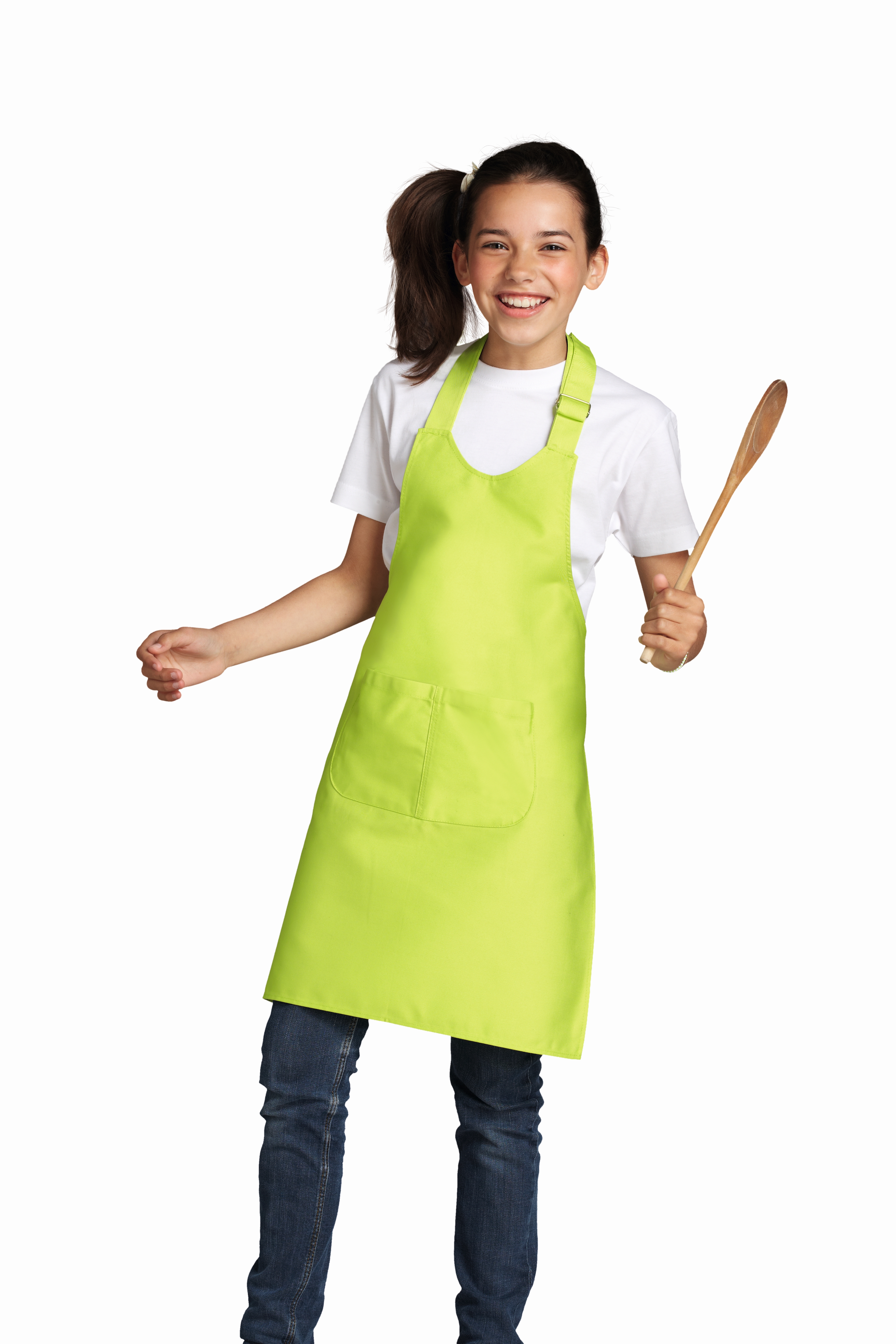 Kinderlatzschürze für Kinder von 5-8 Jahren mit Fronttasche und zwei Fächern, Halsband mit Metallschließe verstellbar.