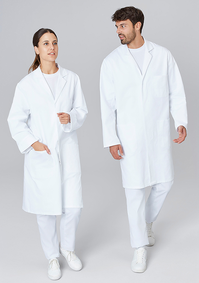 Damenmantel mit verdeckter Druckknopfleiste, eine Brusttasche ca. 12cm x 13cm (Breite x Höhe), zwei Seitentaschen, Gehschlitz.