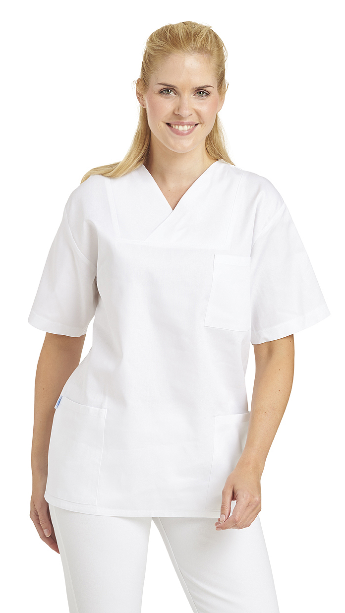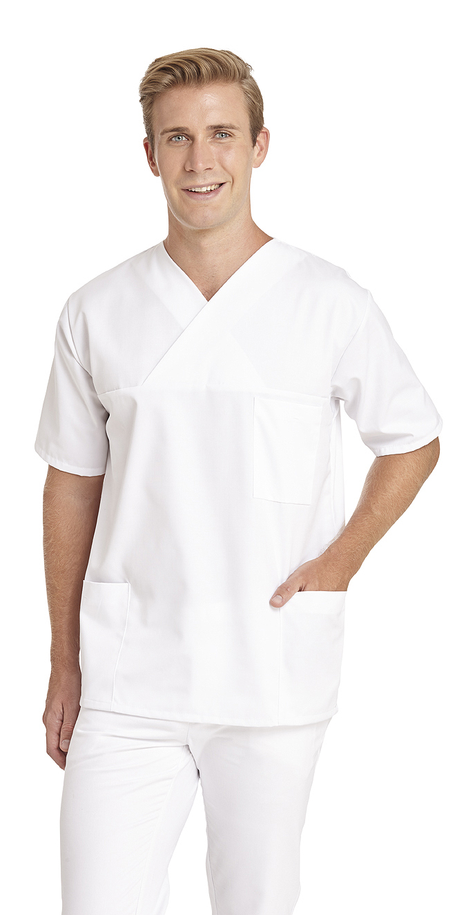 Schlupfkasack für Damen und Herren, Kurzarm, eine Brusttasche, zwei Seitentaschen.