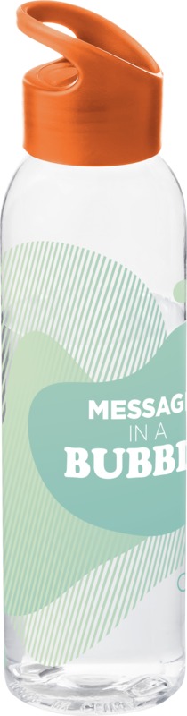 Trinkflasche 650 ml aus Eastman Tritan™ einwandig, BPA-frei, transparent mit Schraubverschluß, mit Tragegriff, Logo möglich.
