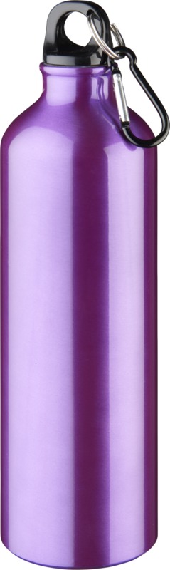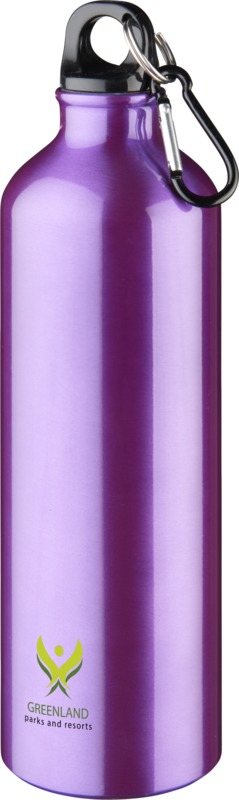 Trinkflasche aus Aluminium, 770 ml, einwandig, Karabinerhaken, Logo möglich.