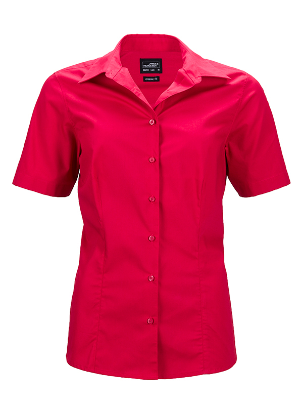 Klassische Kurzarm-Bluse aus strapazierfähigem Mischgewebe, abgerundeter Saum, taillierter und femininer Schnitt, pflegeleichte Popeline-Qualität.