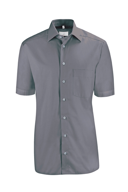 Pflegeleichtes und bequemes Stretch-Herrenhemd, Kurzarm, New Kent-Kragen, gleichfarbige Knöpfe, eine Brusttasche. Passform: Regular Fit = bequeme, leicht taillierte und moderne Passform.