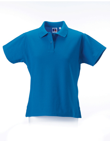 Schweres Damenpolo aus feiner Piquéware mit hohem Tragekomfort und langer Lebensdauer, Seitenschlitze, 3er-Knopfleiste, Ton-in-Ton Knöpfe.
