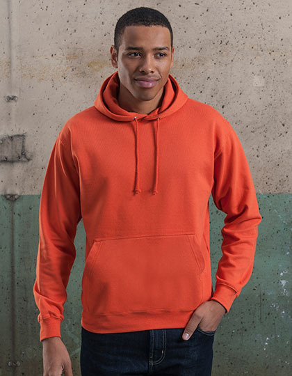 College Hoodie in 56 Farben, Doppelnahtverarbeitung, innen angeraut, Kapuzenkordel in identischer Farbe, doppellagige Kapuze, Kängurutasche an der Vorderseite mit versteckten Öffnungen für Kopfhörerkabel, Strickbündchen an Ärmeln und Saum.
