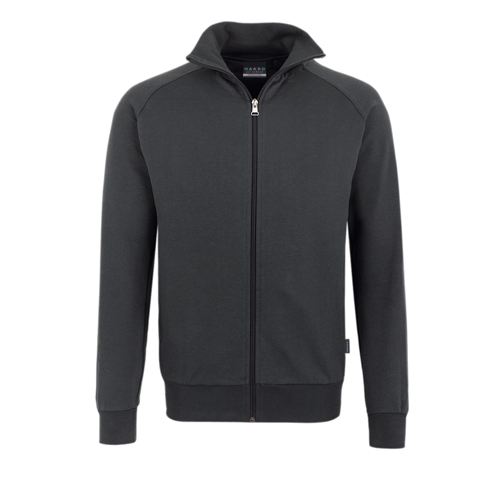Sweatjacke im College-Stil aus pflegeleichter Baumwoll-Polyester-Mischung für höchste Ansprüche. Die modisch, breiten formstabilen Rippstrickbündchen sind zusätzlich mit LYCRA verstärkt. Sportlicher Raglan-Schnitt und Frontreißverschluß YKK, dekorative Flatlock-Nähte und Nackenband.