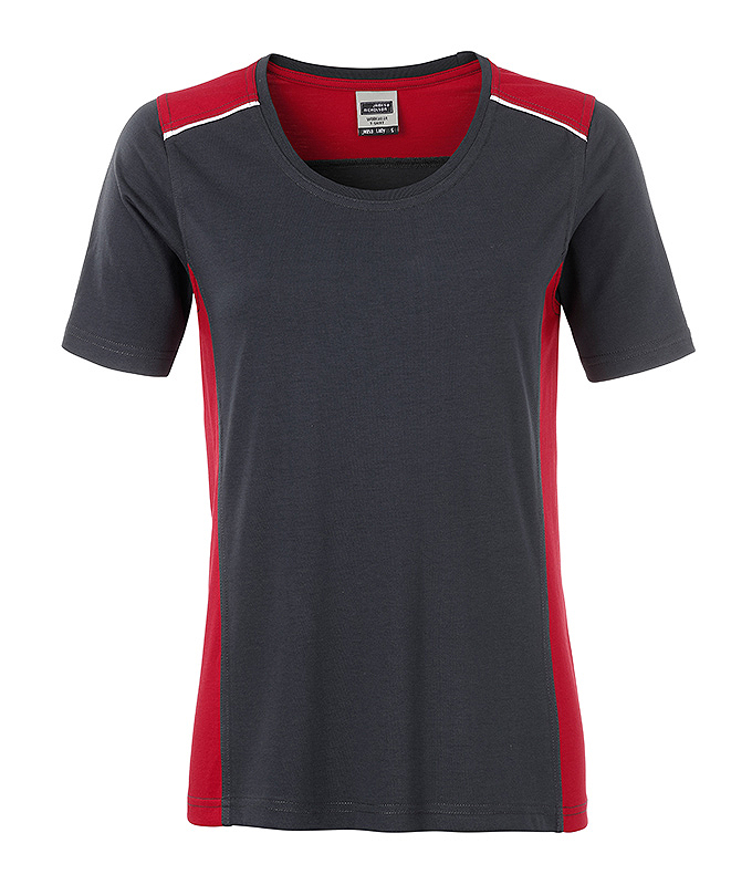 Pflegeleichtes und strapazierfähiges Workwear-T-Shirt mit Kontrasteinsätzen für Damen, leicht tailliert, Materialmix aus Baumwolle und Polyester für optimale Form- und Waschbeständigkeit, konstrastfarbige Einsätze an Seite und Schulter, Paspel an Schulter- Vorderteil, Halsbündchen mit Elasthan, Necktape.